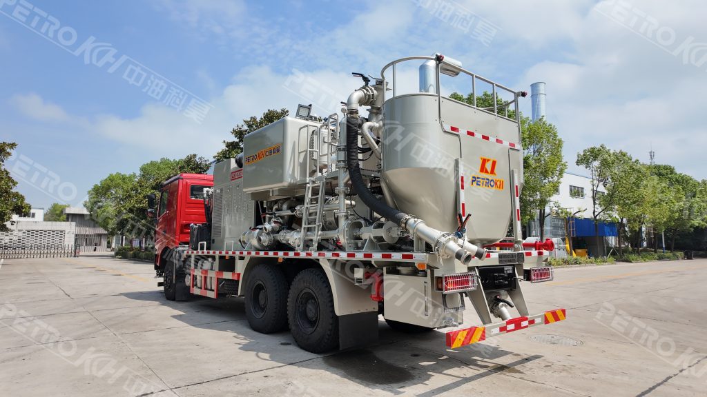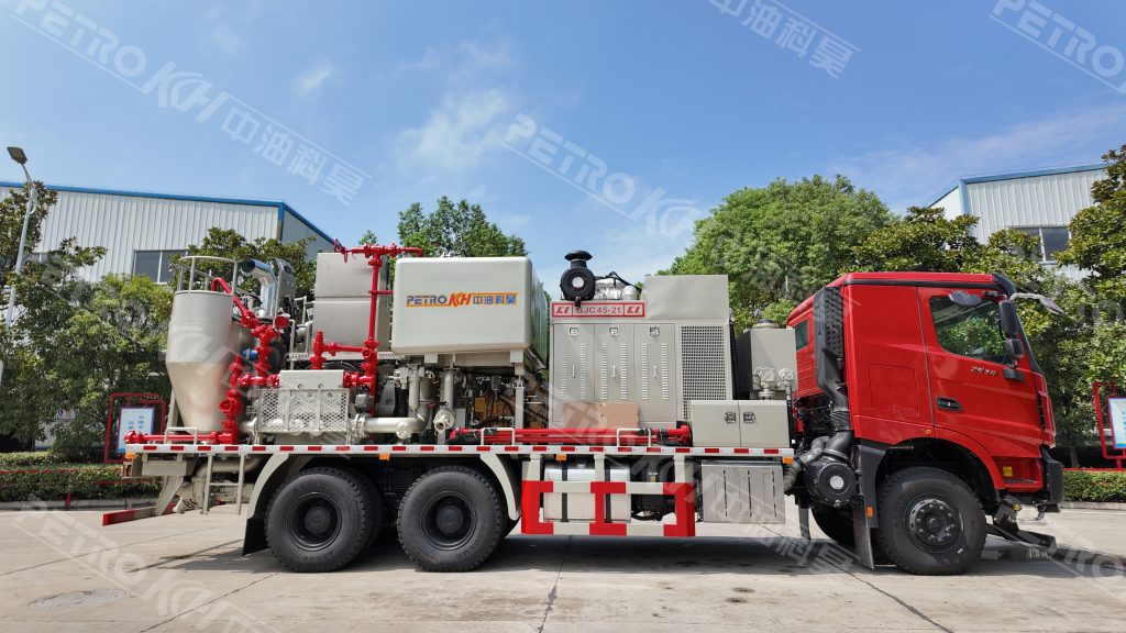 Одной из ключевых особенностей цементировочной агрегата модели GJC45-21 является интегрированная система смешивания и рециркуляции цементного раствора, обеспечивающая однородность смеси и повышение качества цементирования. Благодаря слаженному взаимодействию электрических, гидравлических, пневматических и механических систем все операции выполняются одним оператором, что гарантирует стабильность работы при оптимизации трудовых ресурсов.